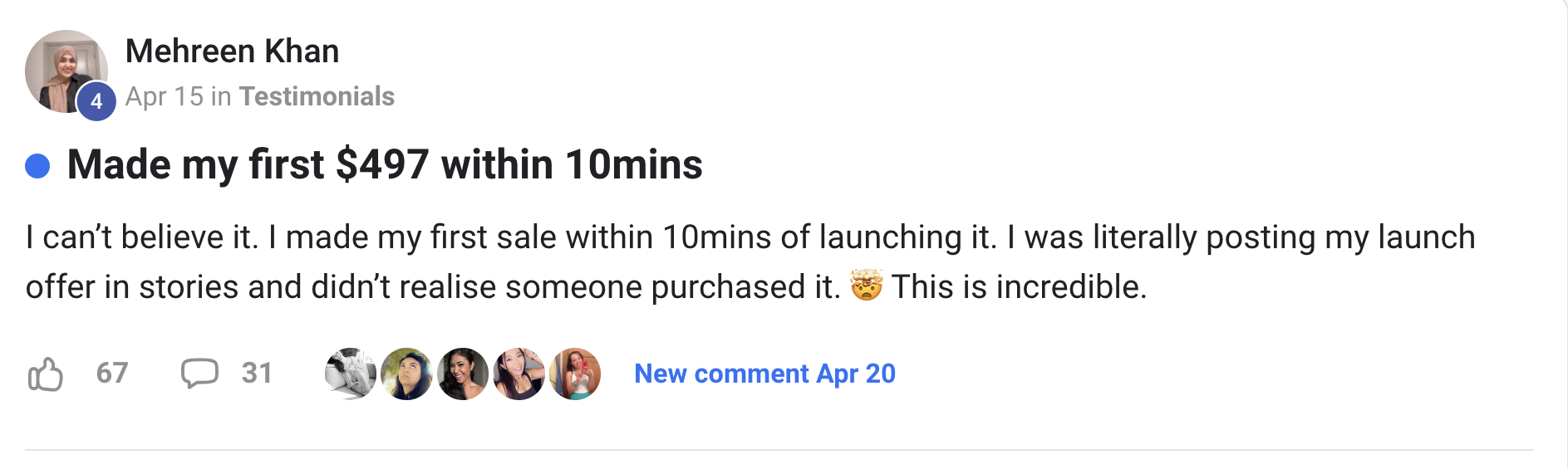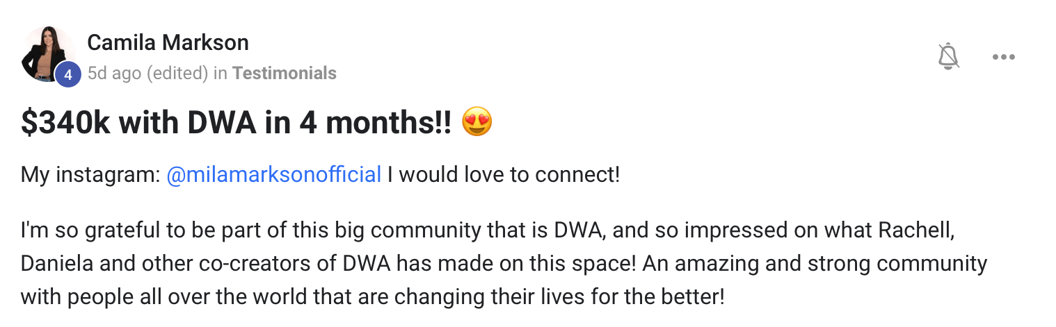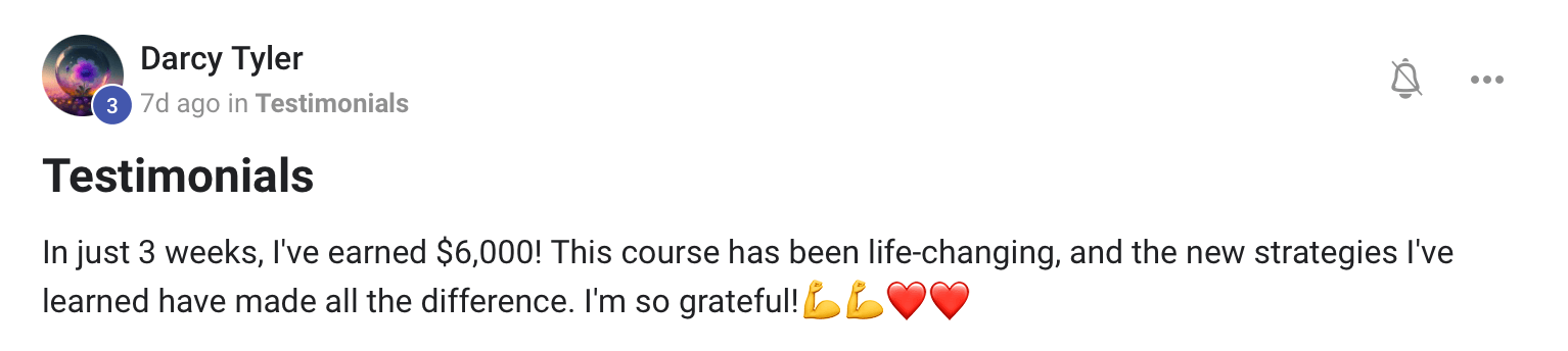 This course actually comes with its own community of 67,000+ people where you can ask questions & network. In addition to that, if you get the course with us, you will be added into the PRIVATE CHANNEL. We want to see you become a success story!